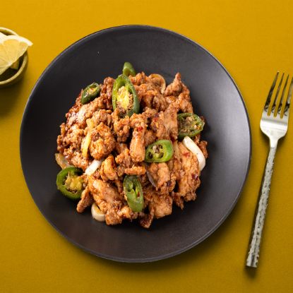 Tender chicken cooked with spicy jalapeños for a flavorful and zesty kick. A perfect choice for spice lovers!
